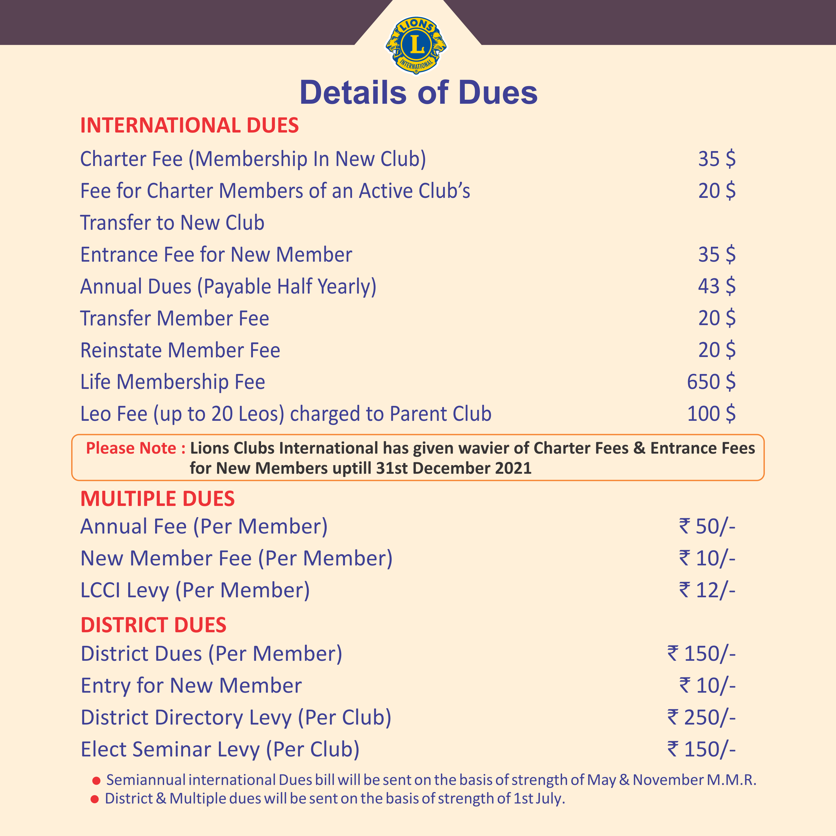 • District Dues