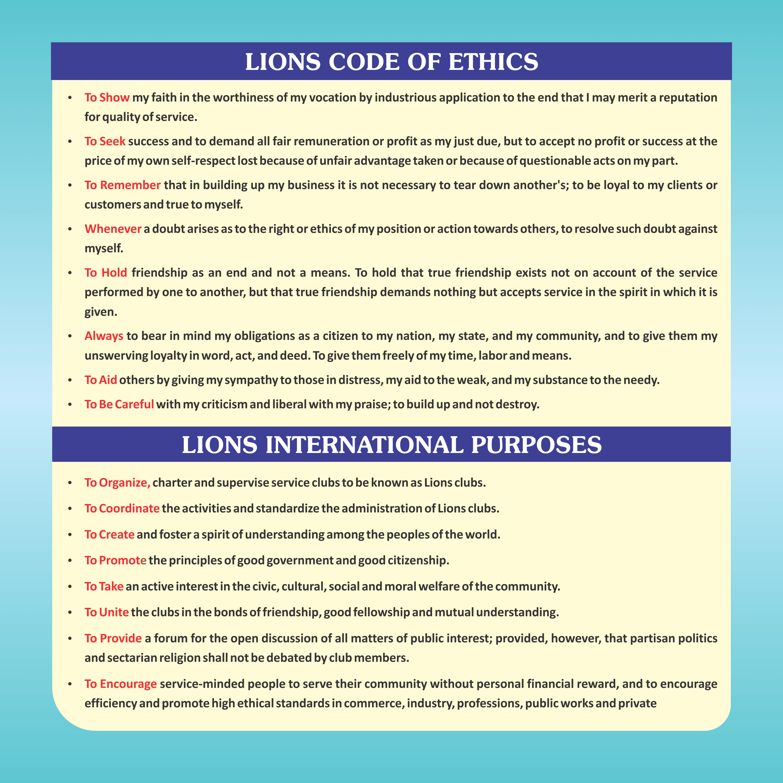 • Lions Pledge