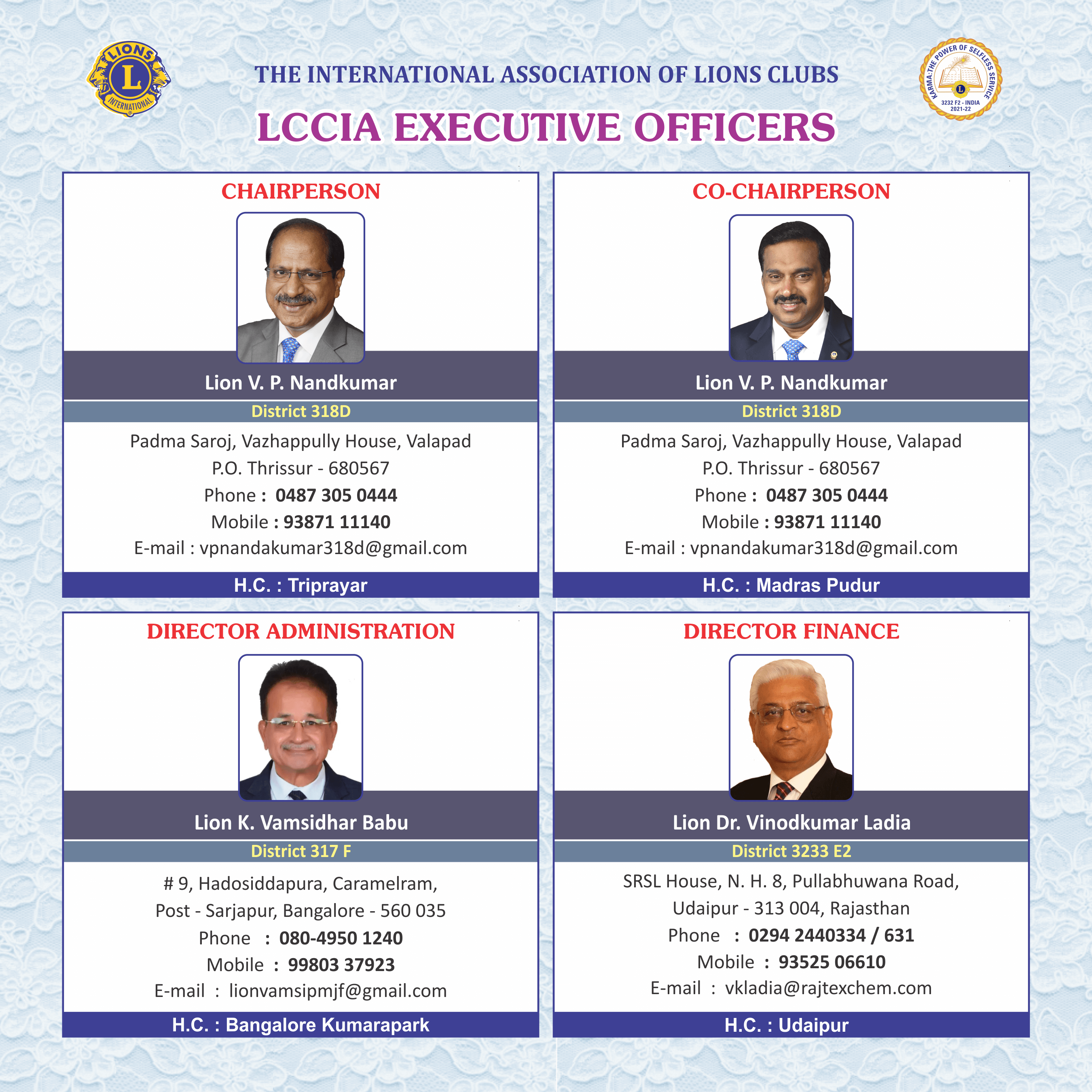 E – mail : lionsindia@lionsclubs.org