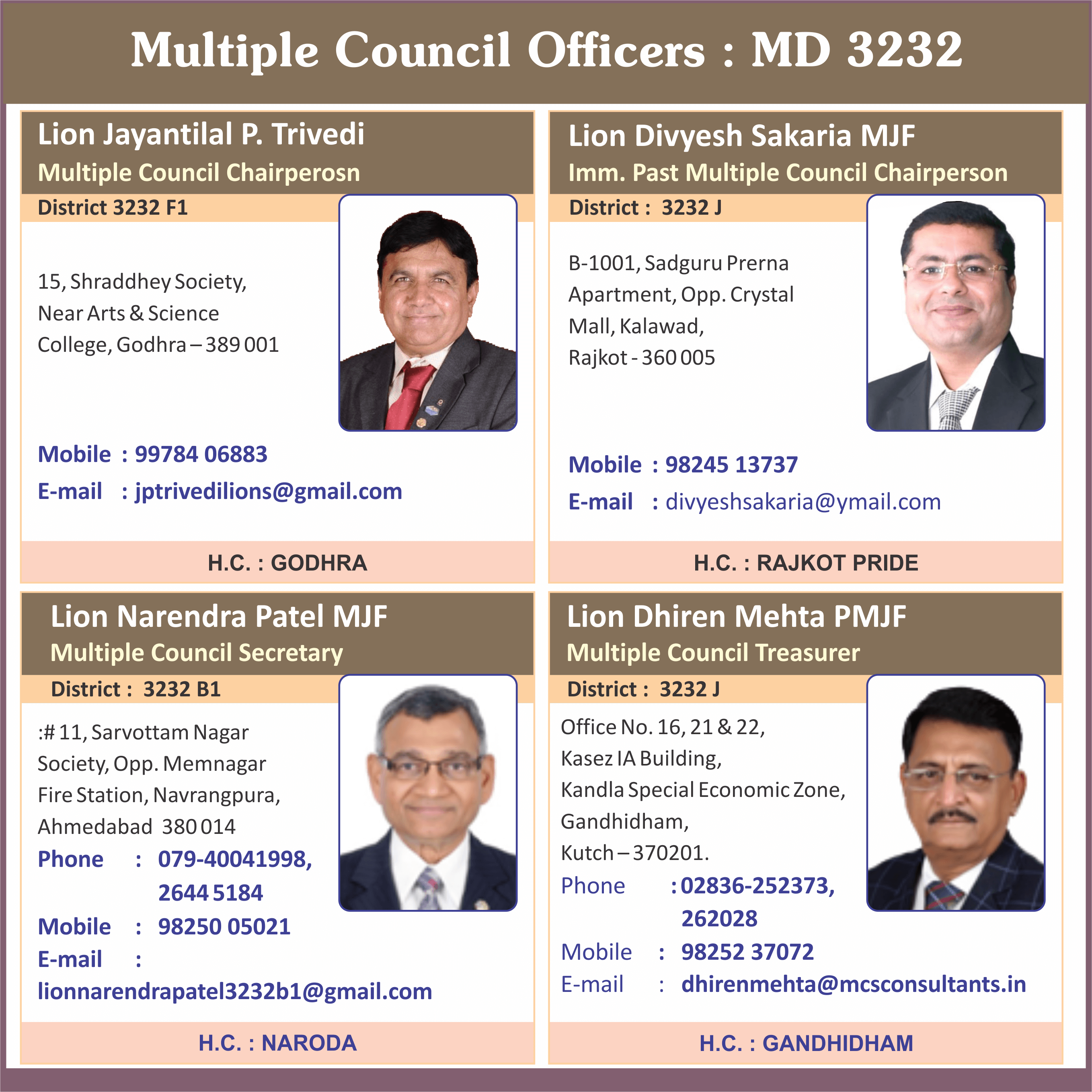 E – mail : lionsindia@lionsclubs.org